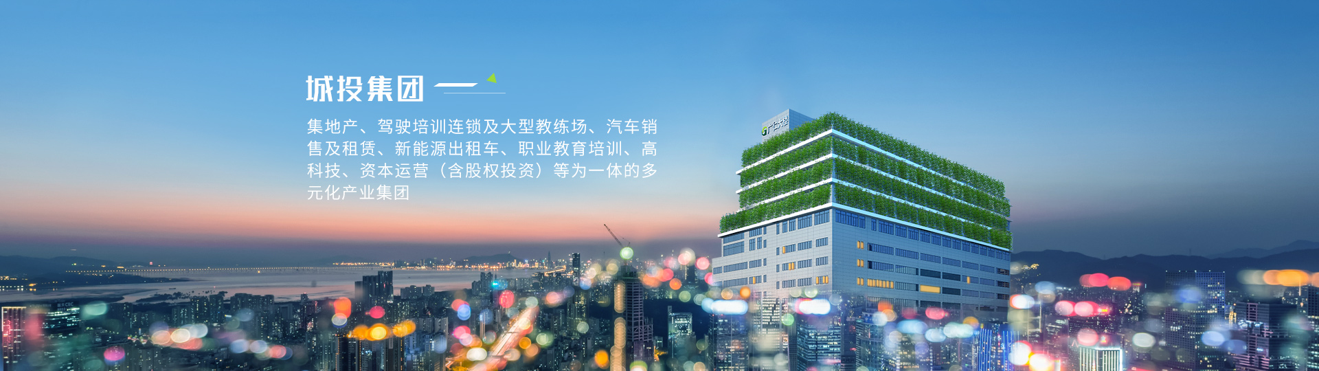 城投集團(tuán)堅(jiān)持“愛黨愛國、孝敬父母”的核心企業(yè)文化,主要業(yè)務(wù)為高科技、互聯(lián)網(wǎng)、基金投資、地產(chǎn)開發(fā)、職業(yè)教育培訓(xùn)、駕駛培訓(xùn)、汽車銷售及租賃、出租車運(yùn)營等。