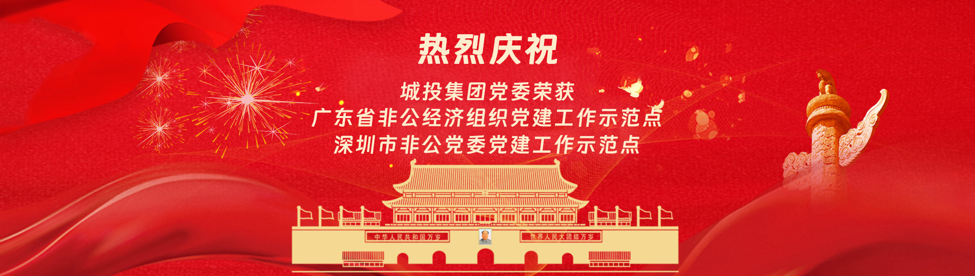 在上級黨委的正確領(lǐng)導(dǎo)下,在城投集團(tuán)的大力支持下,集團(tuán)黨委緊緊圍繞企業(yè)發(fā)展戰(zhàn)略,將黨建引領(lǐng)核心貫穿始終,以五心工程(即思政建設(shè)核心工程、經(jīng)營發(fā)展中心工程、企業(yè)文化向心工程、黨建品牌匠心工程、服務(wù)基層愛心工程)為抓手,大膽探索,勇于突破和創(chuàng)新,不斷形成城投黨建特色,有效輸出城投實(shí)踐經(jīng)驗(yàn),充分發(fā)揮紅色引擎作用,先后獲得深圳市非公黨委黨建工作示范點(diǎn)深圳市兩新組織黨建工作示范點(diǎn)深圳市文明單位深圳市先進(jìn)基層黨組織廣東省非公有制經(jīng)濟(jì)領(lǐng)域黨建工作示范點(diǎn)等榮譽(yù)稱號。